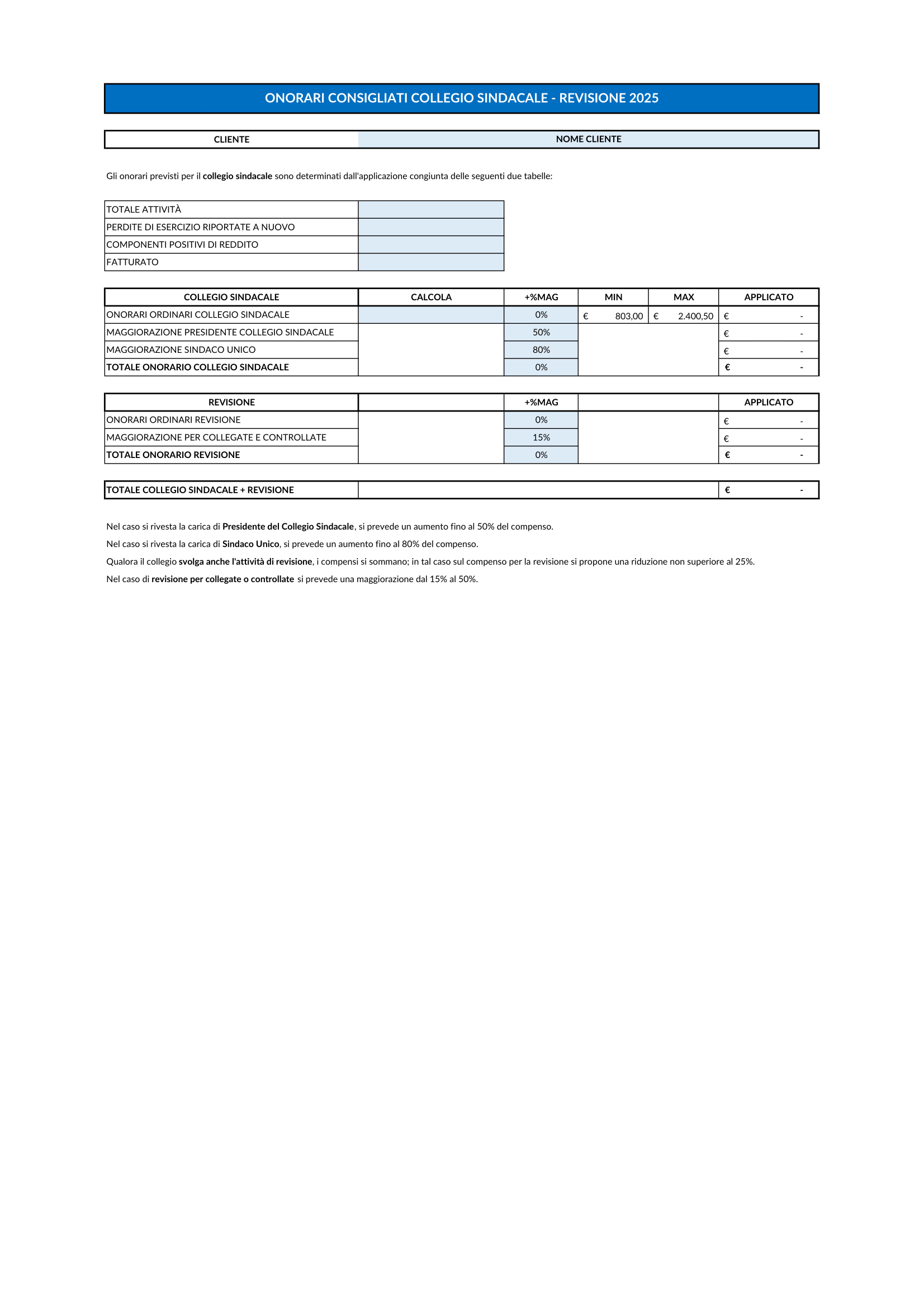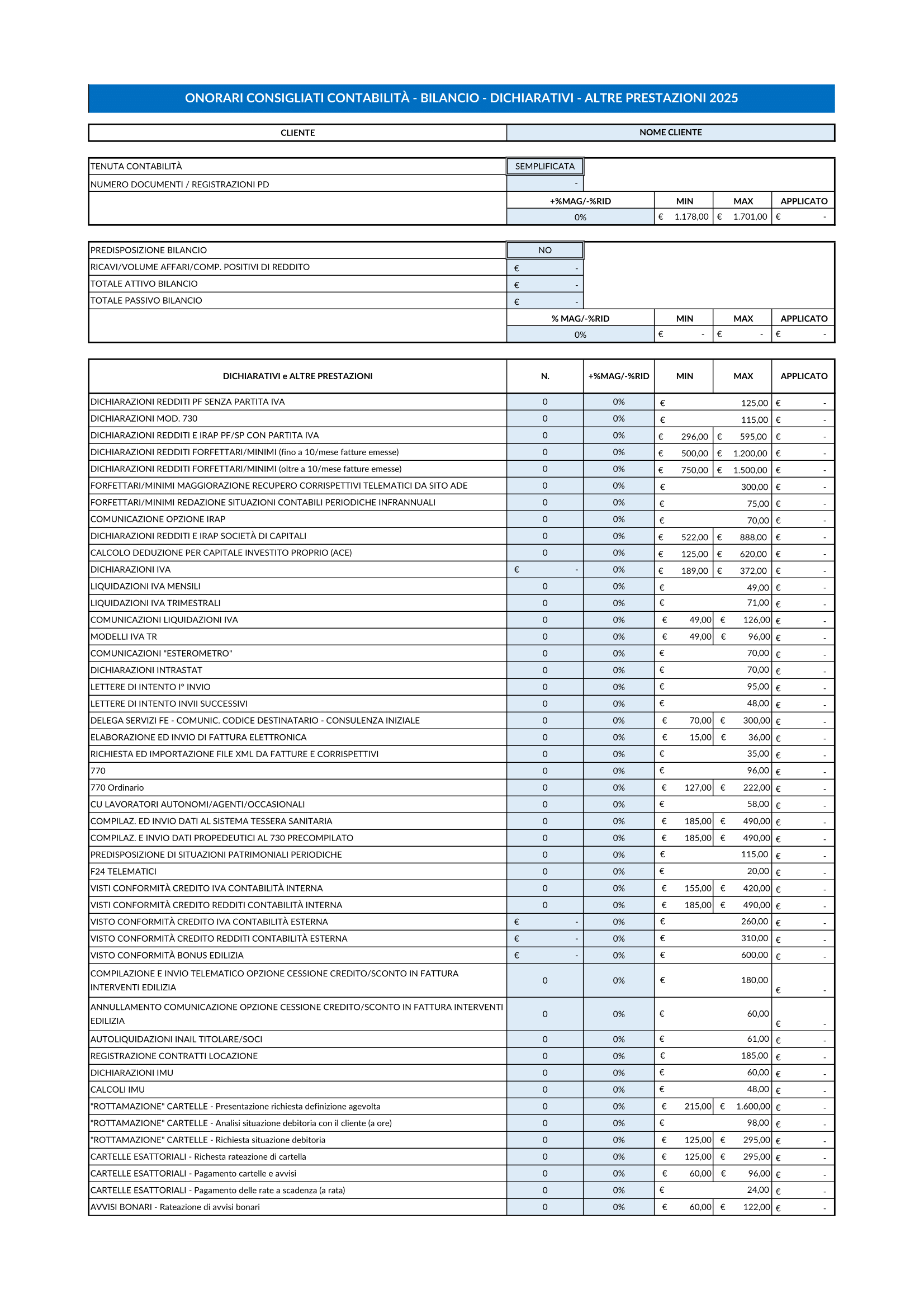 Oltre al programma personalizzabile in base alle tue esigenze troverai il programma con gli onorari consigliati dall’Associazione Nazionale Commercialisti.