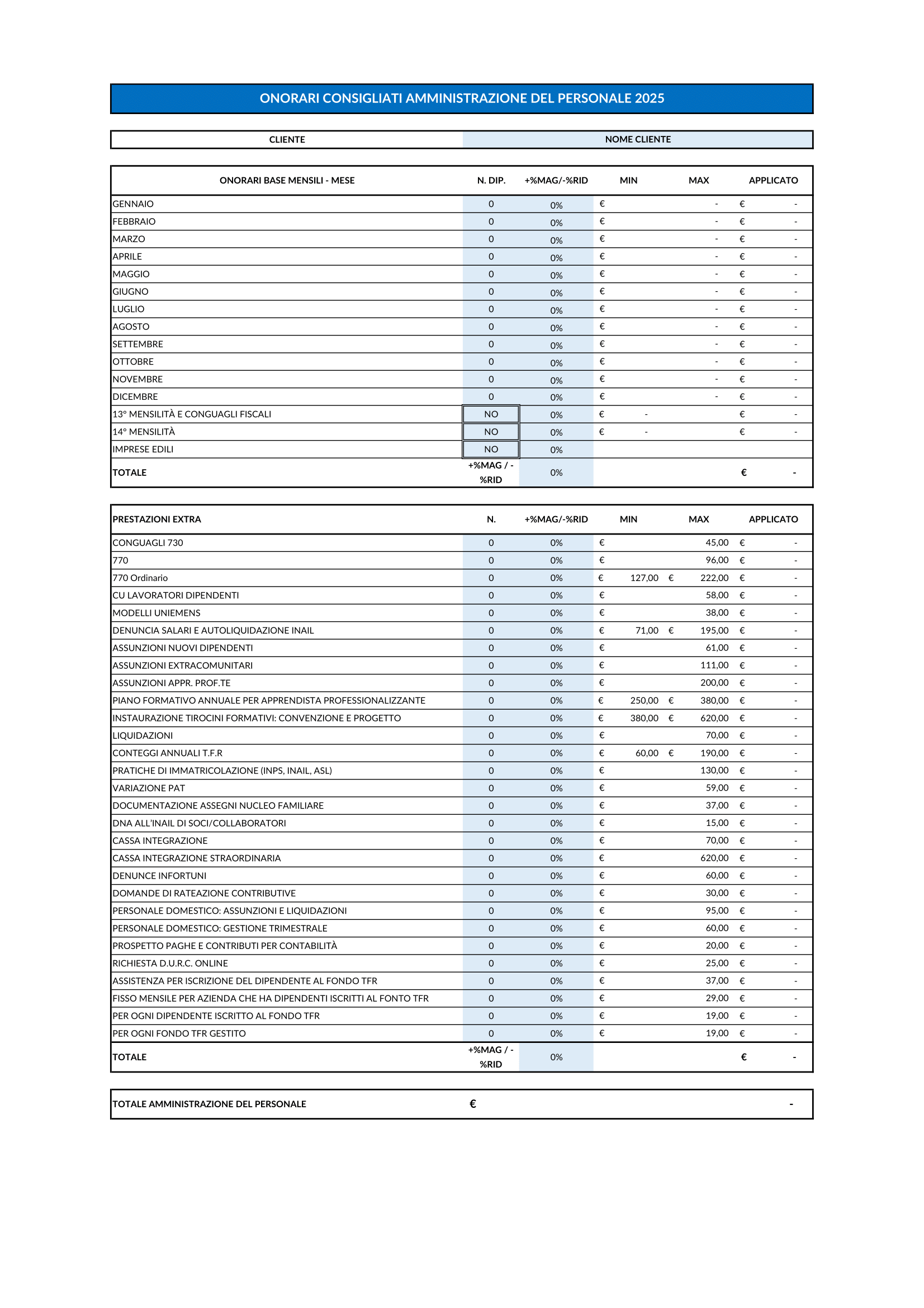Se non sai mai quanto chiedere per una determinata pratica questo è quello che fa al caso tuo!